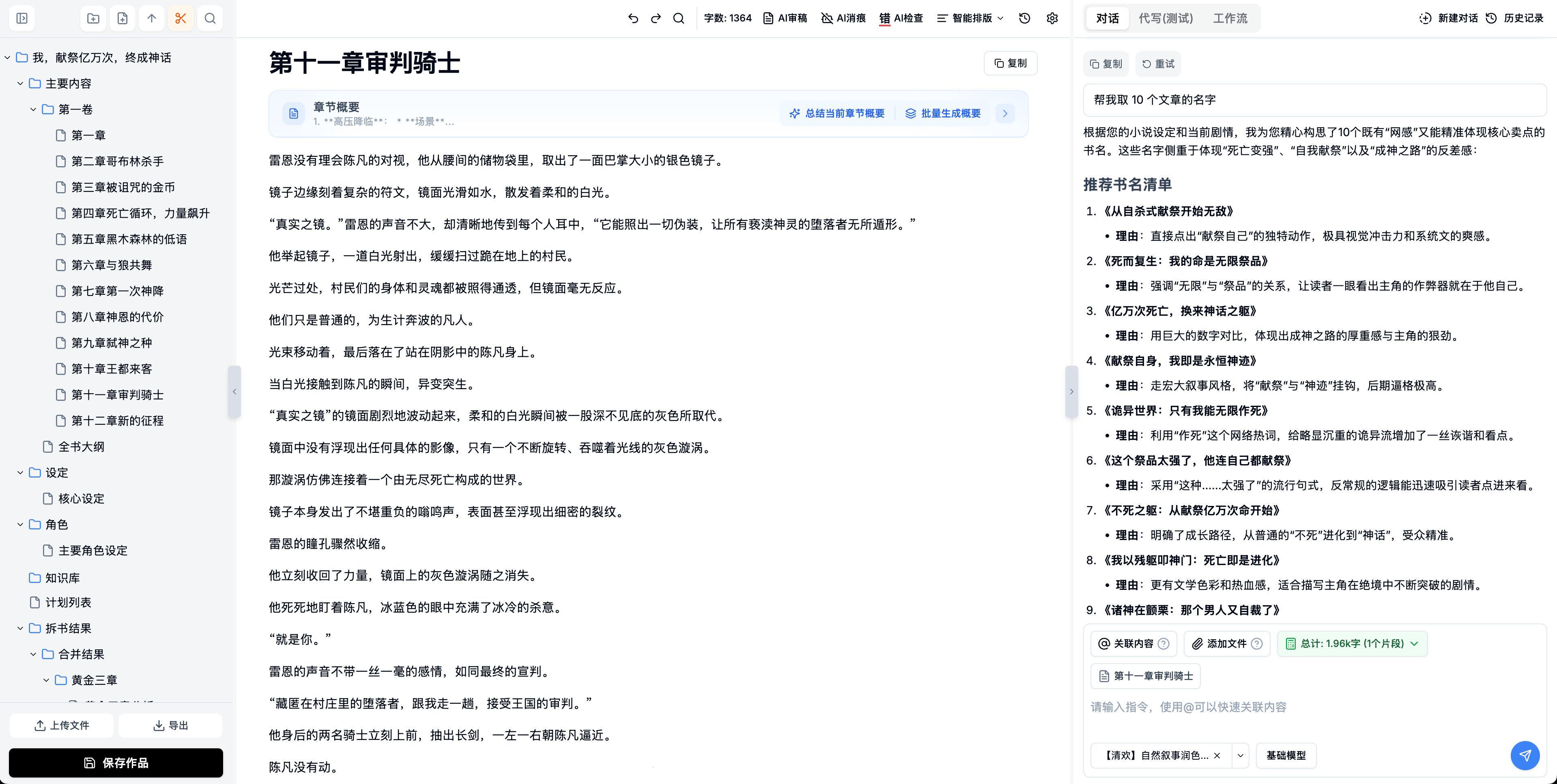 自从开始使用白梦写作,我的创作灵感简直源源不断。它不仅仅是一个强大的AI工具,更像一个与我心有灵犀的写作伙伴,总能在我思路枯竭时,给出恰到好处的启发和建议。无论是构思宏大框架还是雕琢字句细节,它都表现得相当专业,极大地提升了我的写作效率与作品质量。有它在,写作从不是孤军奋战。