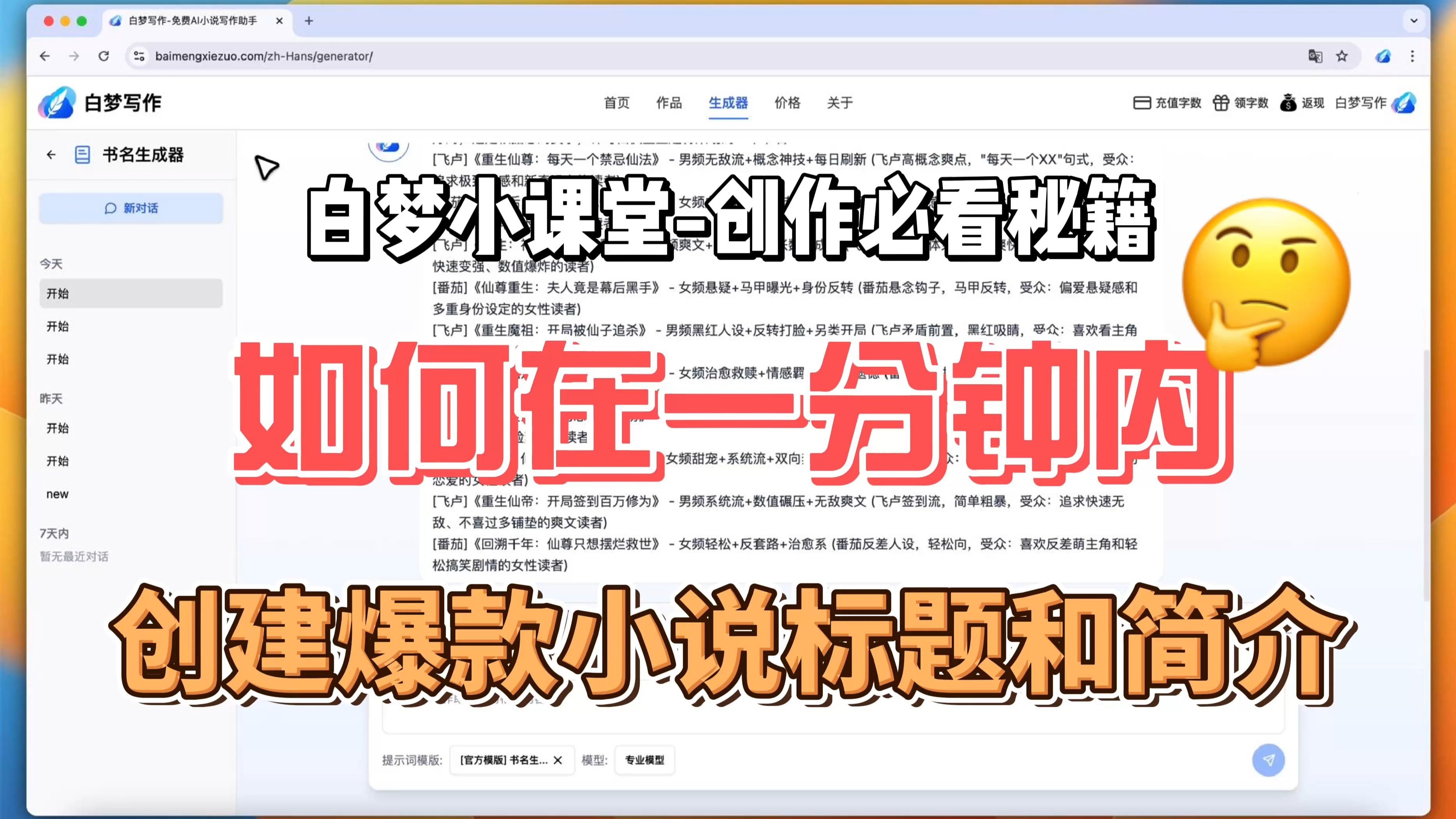 白梦写作小课堂—如何一分钟内创建小说爆款标题和简介