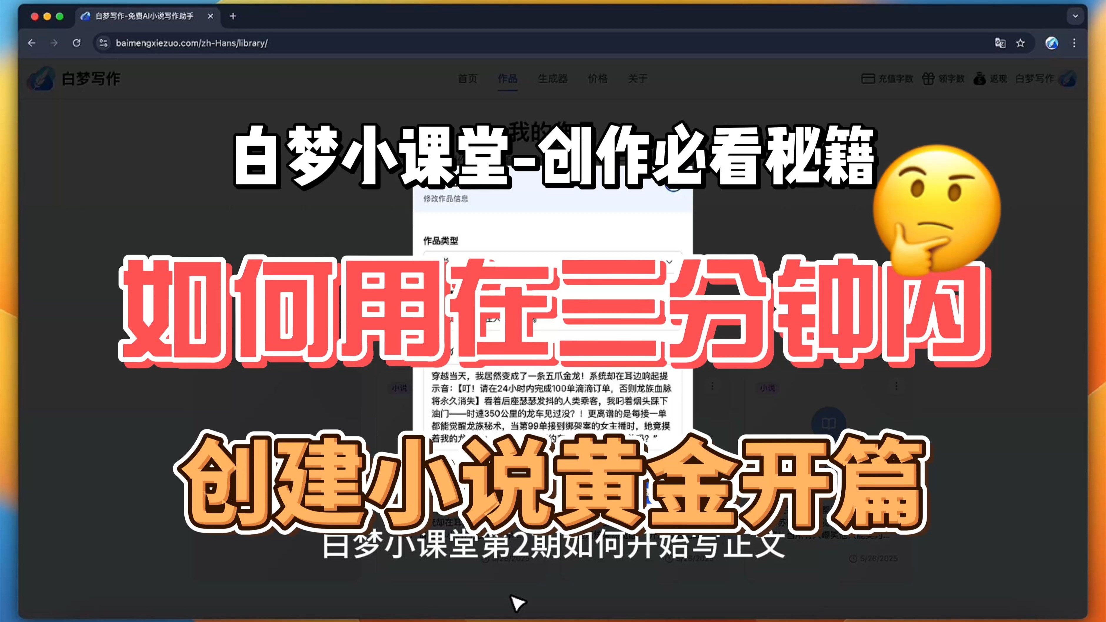 白梦写作小课堂—如何三分钟内生成小说黄金开篇